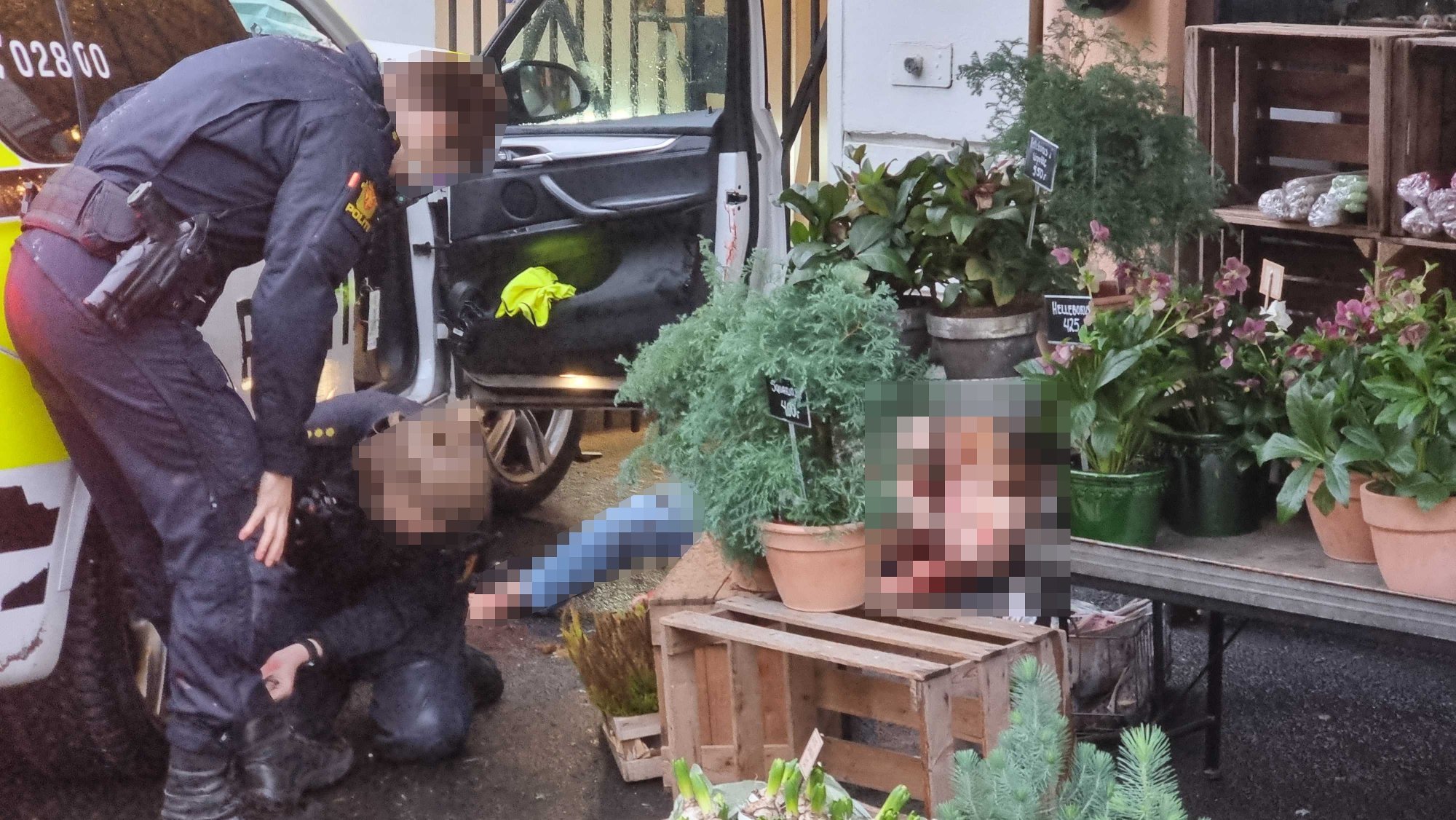 De fortsatt i området etter mulig flere skadde og eventuelt flere truende personer. Ifølge Nettavisen er mannen skutt av politiet. Beslagla tjenestevåpen på stedet En annen politibetjent har forklart at han observert et rør ut fra mannens kropp og at han ropte våpen før han så to.